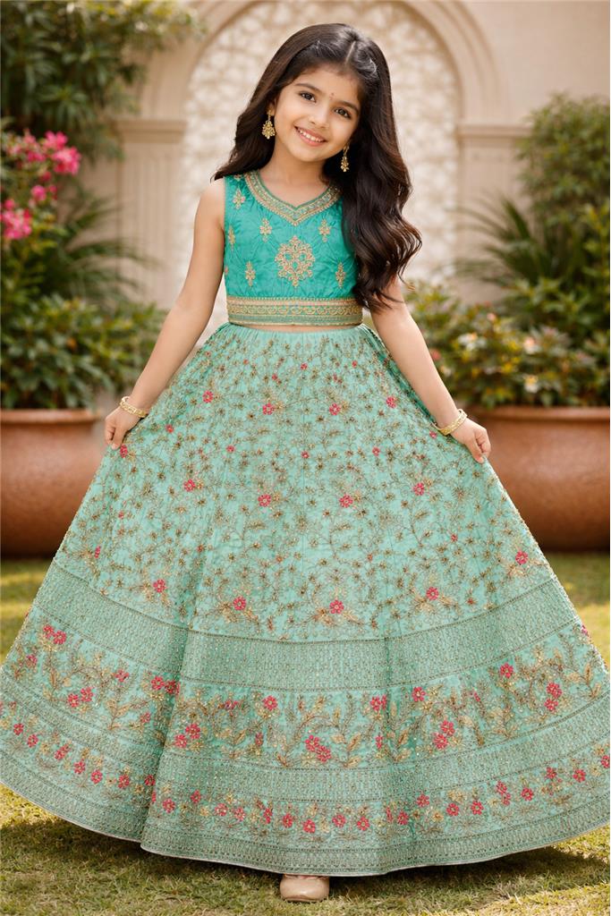 • Elegant Green Color – Beautiful green lehenga enhanced with pink & gold design for a rich and vibrant look. • Pink & Gold Embellishment – Stunning combination of colors adds a festive, eye-catching, and traditional appeal. • Stylish Lehenga Design – Flowy and flared silhouette gives a graceful and royal appearance. • Comfortable & Kid-Friendly Fit – Designed for easy movement and all-day comfort. • Perfect for Special Occasions – Ideal for weddings, festive events, birthdays, and family functions.