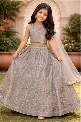 • Elegant Colors – Lehenga enhanced with gold & silver design for a graceful and festive look. • Gold & Silver Embellishment – Beautiful dual-tone detailing adds a rich, shiny, and eye-catching appeal. • Stylish Lehenga Design – Flowy and flared silhouette gives a graceful and elegant appearance. • Comfortable & Kid-Friendly Fit – Designed for easy movement and all-day comfort. • Perfect for Special Occasions – Ideal for weddings, festive events, birthdays, and family functions.