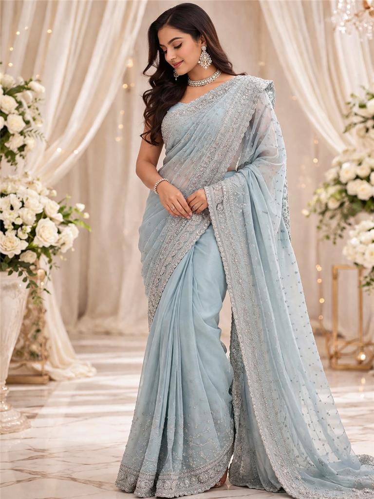 • Elegant Light Blue Color – Beautiful light blue shade enhanced with blue & silver gems and embroidery for a rich, eye-catching look. • Premium Rayon Fabric – Soft, smooth, and breathable rayon material that offers comfort with a slight flowy finish. • Detailed Gem & Embroidery Work – Intricate embellishments give a festive, stylish, and premium appearance. • Free Size Fit – Designed to comfortably fit a wide range of body types. • Lightweight & Comfortable – Perfect for long wear without compromising on style. • Perfect for Occasions – Ideal for parties, festive events, and evening wear.