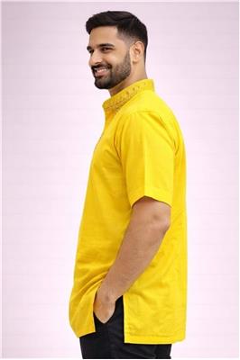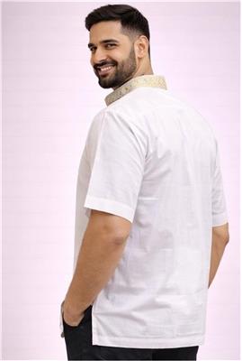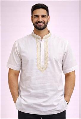 🟡 Design Product Name: Sunshine Gold Embroidered Kurta Description: • 🟡 Vibrant yellow kurta with elegant gold embroidery • 🌿 Soft & breathable cotton material for all-day comfort • 👕 Short sleeve design – perfect for casual & festive wear • ✨ Stylish embroidered neckline for a premium ethnic look • 📏 Sizes available: 38–52 ⚪ Design Product Name: Royal White Fusion Embroidered Kurta Description: • ⚪ Classic white kurta with gold & blue embroidery detail • 🌿 Premium cotton fabric – lightweight & comfortable • 👕 Short sleeve style for easy everyday or festive wear • ✨ Elegant detailed neckline adds a refined touch • 📏 Sizes available: 38–52
