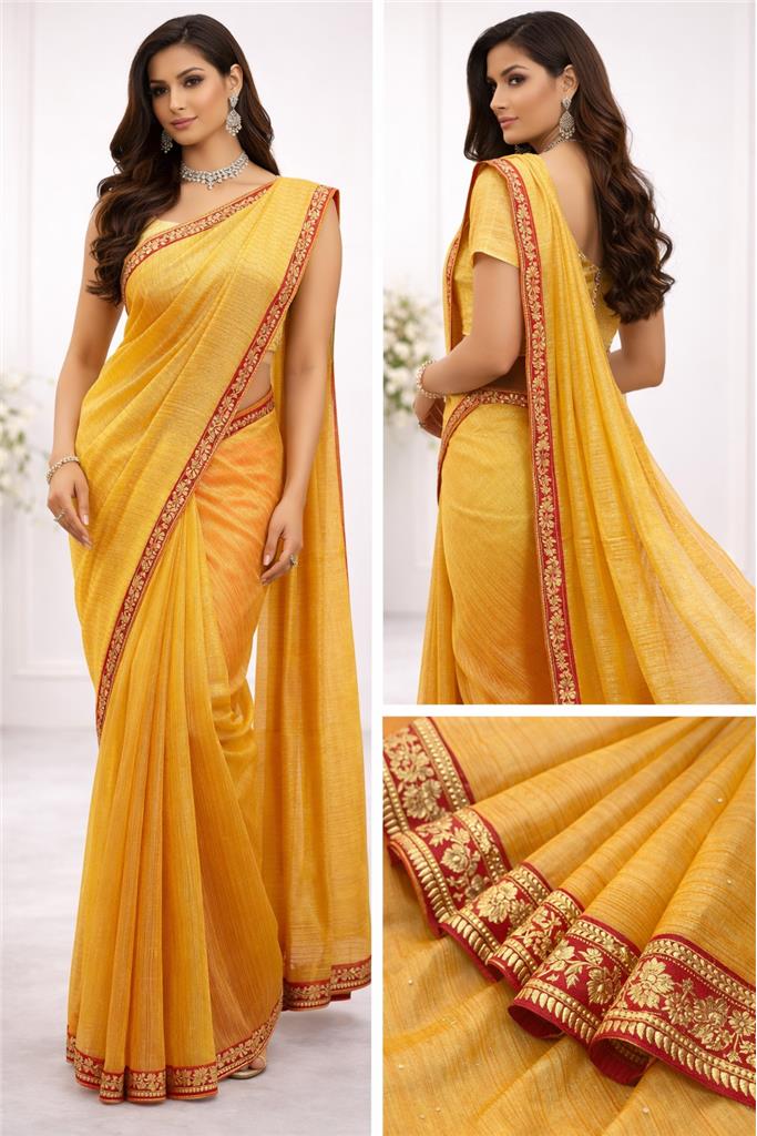 • Rich Gold Color – Elegant gold shade enhanced with a striking red lining for a bold and luxurious contrast. • Premium Tissue Silk Fabric – Lightweight fabric with a subtle sheen, giving a rich and graceful appearance. • Stylish Contrast Detailing – Red lining adds depth and a unique touch to the overall design. • Free Size Fit – Designed to comfortably fit a variety of body types. • Lightweight & Comfortable – Easy to wear while maintaining a premium and festive look. • Perfect for Occasions – Ideal for weddings, festive events, and special gatherings.
