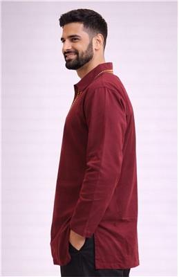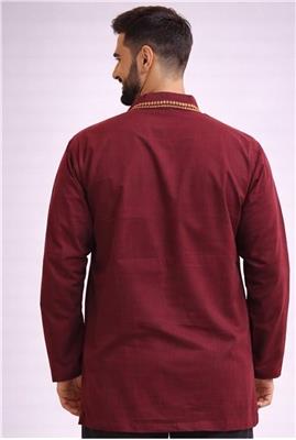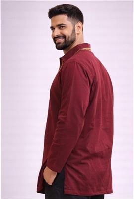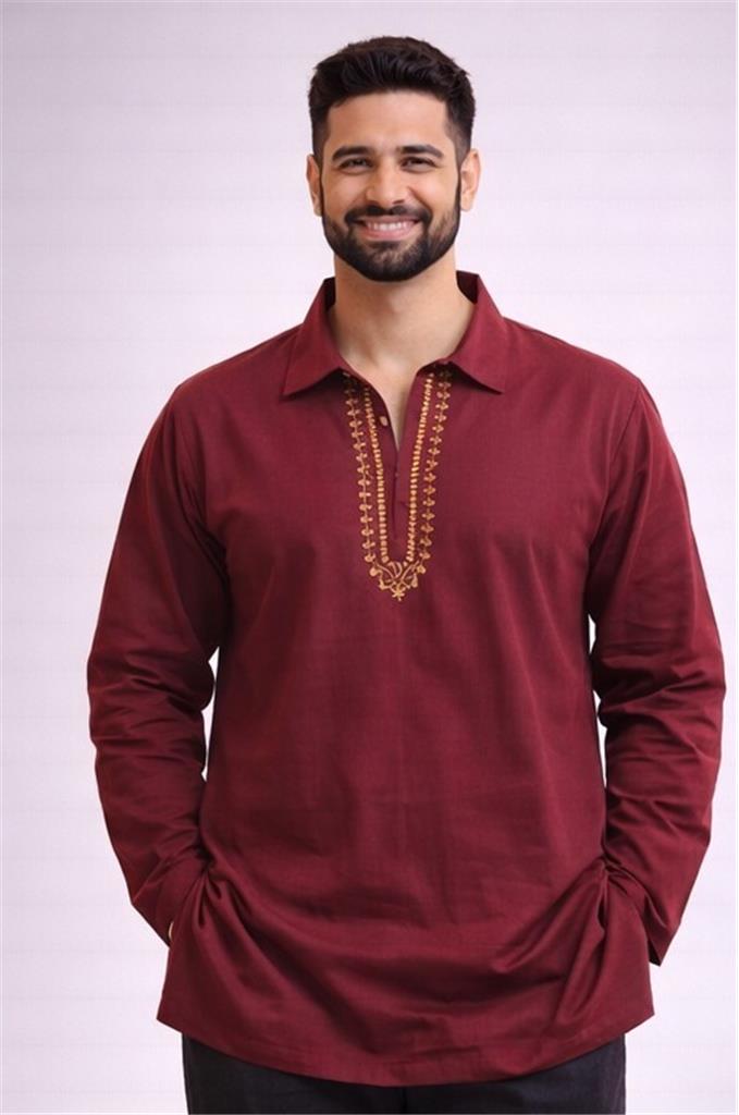 • Elegant Burgundy Kurta Shirt – Plain rich color with gold embroidery design • Premium Cotton Fabric – Soft, breathable, and comfortable for all-day wear • Long Sleeve Design – Perfect for traditional and formal occasions • Gold Embroidery Neckline – Adds a classy and premium ethnic look • Available Sizes – 38 to 52 • Perfect for Occasions – Festivals, weddings, and special events