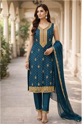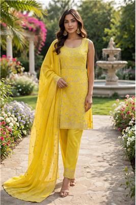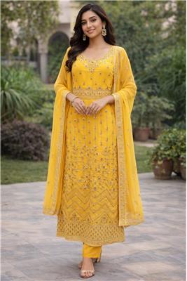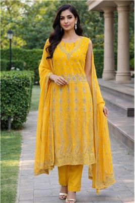 🌙 Celebrate Eid in timeless elegance with this beautifully crafted festive ensemble, designed to make every moment feel special. ✨ Intricate gold embroidery and luxurious detailing create a rich, graceful look perfect for festive gatherings and celebrations. 👗 Premium-quality fabric ensures a comfortable yet regal drape, allowing you to move effortlessly throughout the day. 🌸 Thoughtfully designed with a flattering silhouette and exquisite craftsmanship for a refined, festive appearance. 💫 Ideal for Eid, weddings, and special occasions, this outfit blends tradition with modern sophistication.