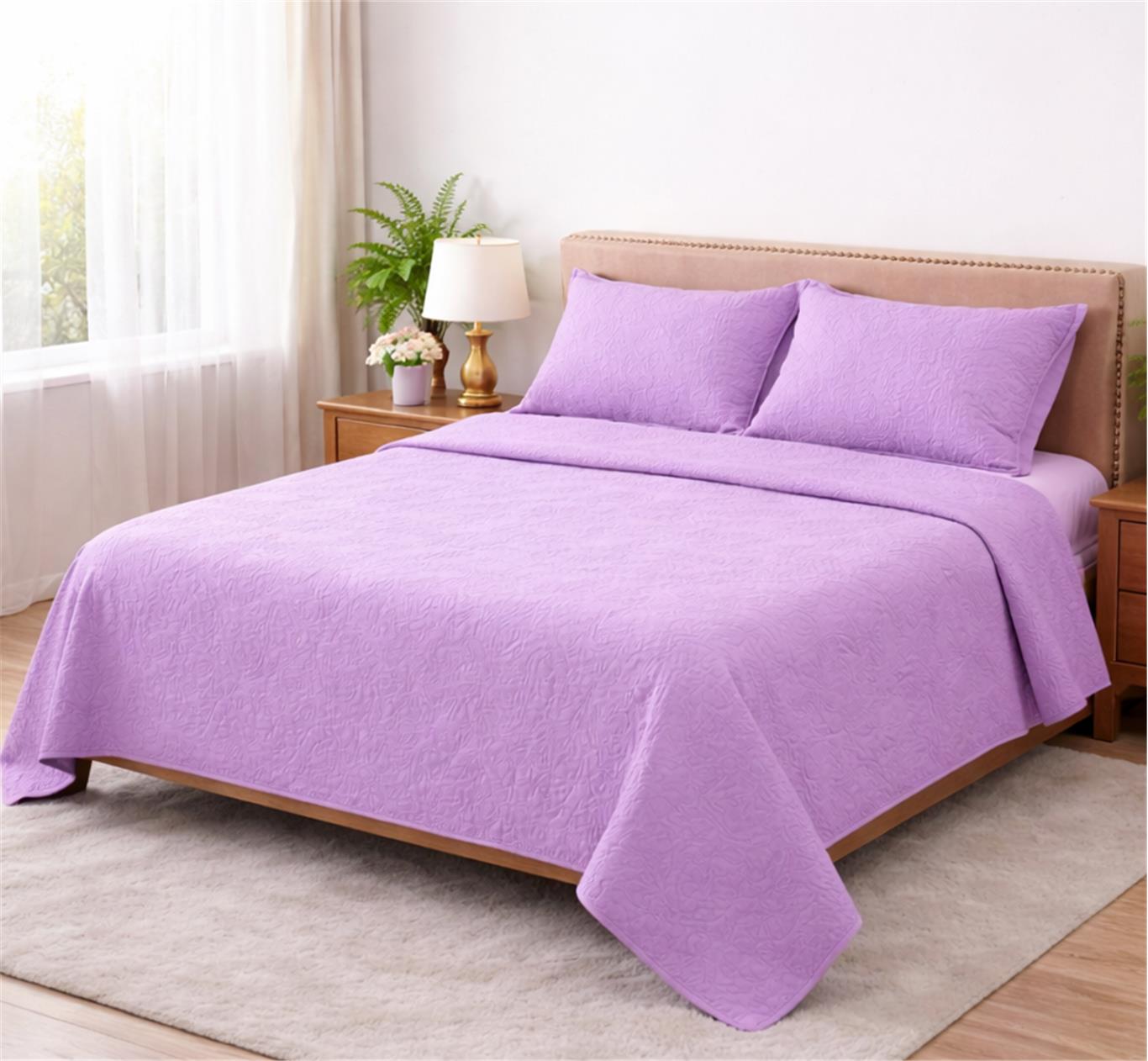 Transform your bedroom into a haven of comfort and elegance with this quilted bedsheet set. Designed with exquisite embroidered thread work, this set exudes sophistication while delivering unmatched coziness. Premium Quality Material: Made from a durable and soft cotton-polyester blend, combining the breathability of cotton with the resilience of polyester for long-lasting use. Thick & Soft Texture: Offers a plush, comfortable feel that is perfect for restful sleep every night. Complete Set: Includes a quilted bedsheet (200x230cm) and two matching pillowcases, ensuring a cohesive and stylish bedroom look. Queen Size: Fits perfectly on queen-size beds and comes with a convenient storage bag for easy organization. Vibrant Colors: Available in purple and dark green to match your personal style and bedroom décor. Upgrade your bedding with this elegant and practical set. Perfect for personal use or as a thoughtful gift for loved ones. Bring comfort and style into your home today!