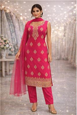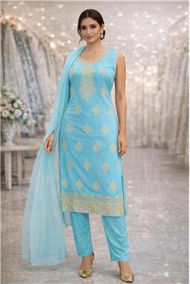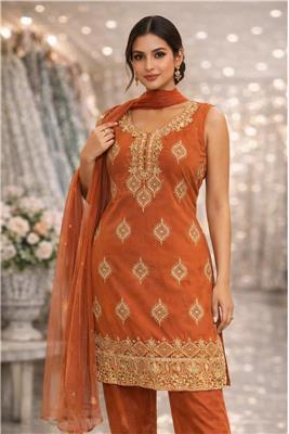 🌸Elegant embroidered kurta set designed for a refined ethnic look 🌸Straight silhouette offering a flattering and comfortable fit 🌸Features intricately embroidered yoke, motifs, and hem border for festive charm 🌸Stylish sleeveless kurta with a graceful, modern neckline 🌸Comes with matching straight-fit pants for a perfectly coordinated ensemble 🌸Paired with a lightweight sheer dupatta that adds effortless elegance 🌸Crafted from soft, breathable fabric for all-day comfort 🌸Ideal for festive occasions, celebrations, weddings, and parties 🌸Easy to style with statement jewellery and heels for a complete look Available Colors: Blue, Pink & Peach 📐 Available Sizes: 38, 40, 42, 44, 46, 48