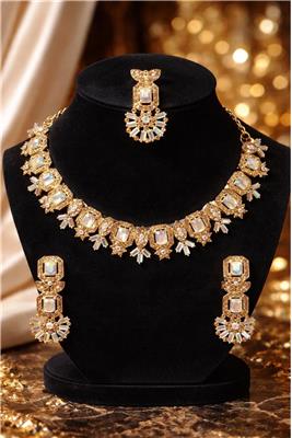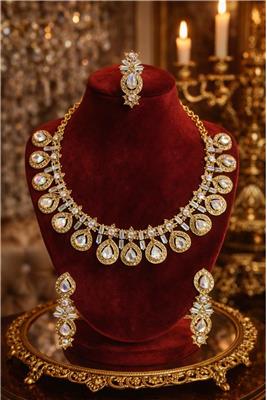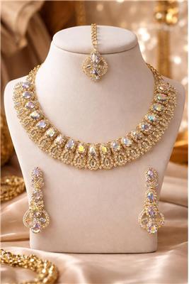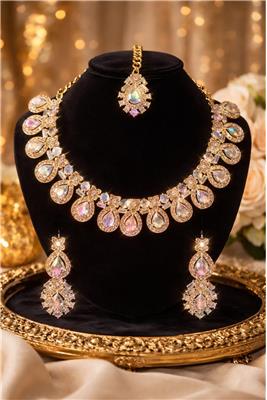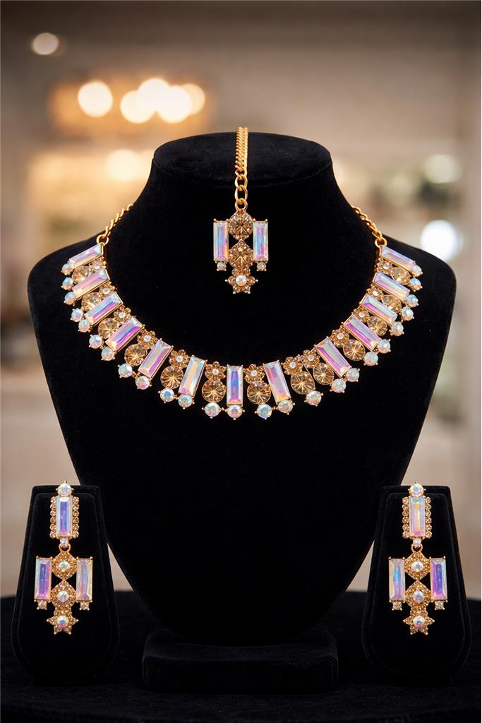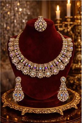 Discover our elegant Luxury Crystal Chainset Collection, designed to bring brilliance, sophistication, and timeless beauty to every occasion. Our collection features three distinctive themes — Iridescent Gold, Champagne Rainbow Light Stone, and American Diamond with Silver Plating — each offering its own unique sparkle and elegance. • Premium Crystal Craftsmanship – High-quality stones designed to reflect light beautifully for maximum brilliance and sparkle. • Elegant Plating Finishes – Available in luxurious gold-tone plating and refined silver plating for a sophisticated jewellery look. • Unique Stone Styles – Featuring baguette-cut crystals, champagne rainbow stones, and American diamond crystals for distinctive beauty. • Stylish & Timeless Designs – Carefully crafted to complement both traditional outfits and modern fashion. • Comfortable to Wear – Lightweight construction ensures comfortable wear for long events and celebrations. • Perfect for Special Occasions – Ideal for weddings, parties, festive celebrations, engagements, and elegant evening wear.
