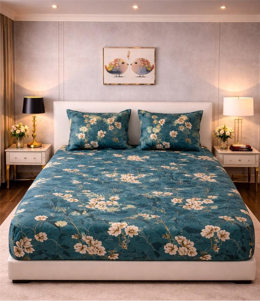 Complete 3-Piece Set: Includes 1 fitted printed bedsheet + 2 matching pillowcases Designed with a fitted sheet style for a smooth, secure, and wrinkle-free fit Made from 100% polyester for durability and long-lasting use Ultra-soft & cozy fabric ensures a comfortable and restful sleep Breathable material suitable for everyday use Features elegant printed designs to enhance bedroom décor Fade-resistant & wrinkle-free for a neat, fresh look after every wash Easy to maintain: Machine washable and quick-drying Perfect fit: Suitable for Double beds up to Standard King size