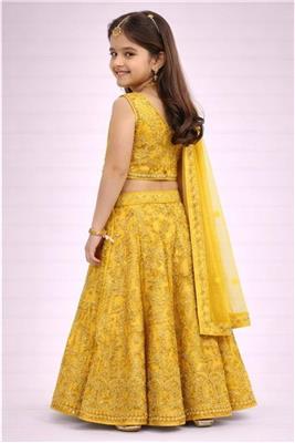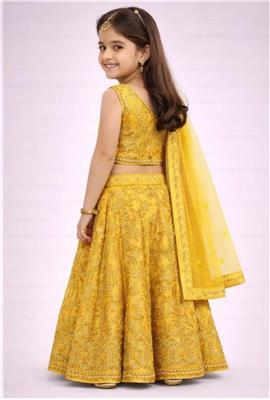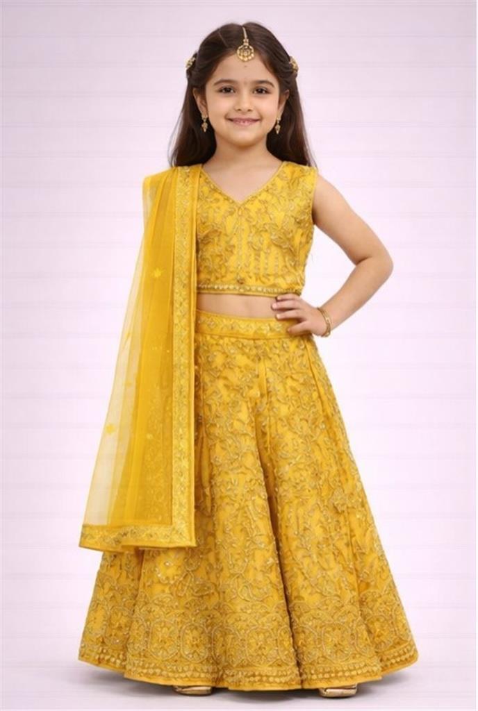 Golden Aura Kids Gharara Set Description: • 💛 Beautiful yellow gharara with elegant gold thread embroidery • ✨ Rich traditional design for a premium festive look • 👗 Includes matching dupatta for complete ethnic style • 🌿 Comfortable & lightweight for kids • 🎉 Perfect for weddings, parties & special occasions • 📏 Available sizes: 26, 30, 34