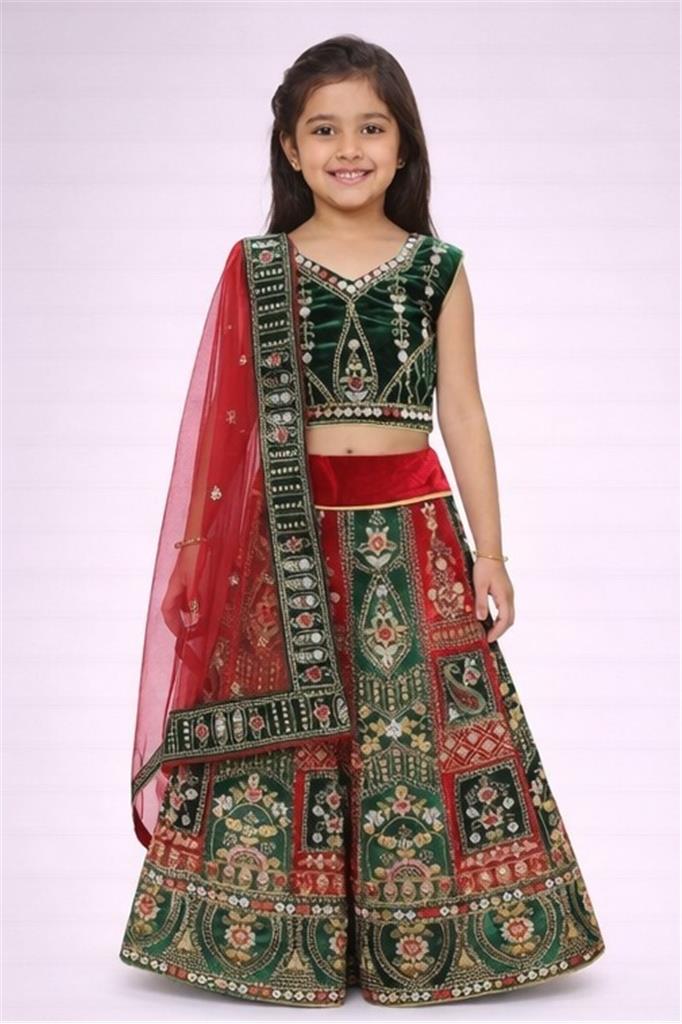 ✨ Description Points: • 🎨 Elegant Red & Green Gharara Set with intricate gold, red & light pink thread embroidery • 👗 Premium Festive Design perfect for weddings, Eid, Diwali & special occasions • 🧵 Detailed Handwork Patterns adds a rich and luxurious ethnic look • 🪶 Comfortable & Lightweight Fabric suitable for kids’ all-day wear • 🧣 Includes Matching Dupatta for a complete traditional outfit • 📏 Available Sizes: 16, 20, 22 • 💃 Stylish Flared Gharara Bottom for a graceful and trendy look • 🎁 Perfect Gift Choice for kids festive wardrobe • 🚚 Spend $600 & more and get FREE delivery
