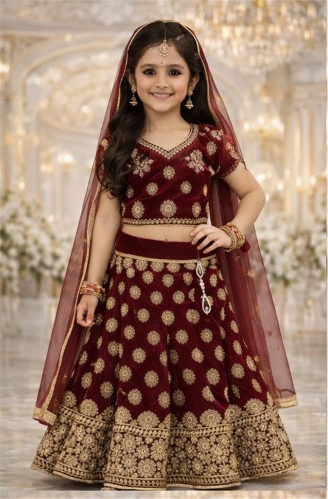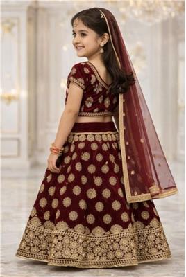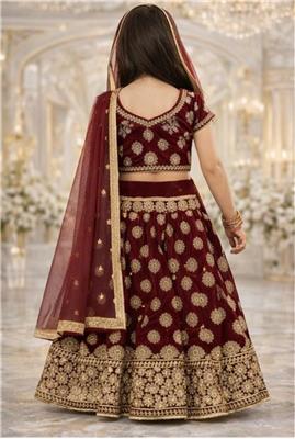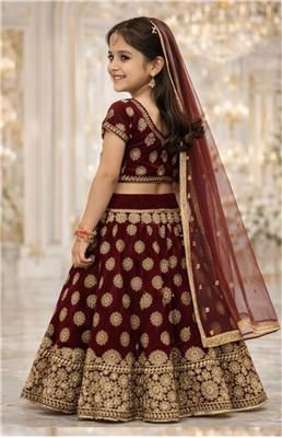 Royal Burgundy Princess Gharara Description: • ❤️ Rich burgundy gharara with elegant gold thread embroidery • ✨ Premium festive design with intricate detailing • 👗 Includes matching dupatta for a complete royal look • 👑 Perfect for weddings, Eid & special occasions • 🌿 Comfortable fit for kids with stylish finish • 📏 Available sizes: 16, 18, 26