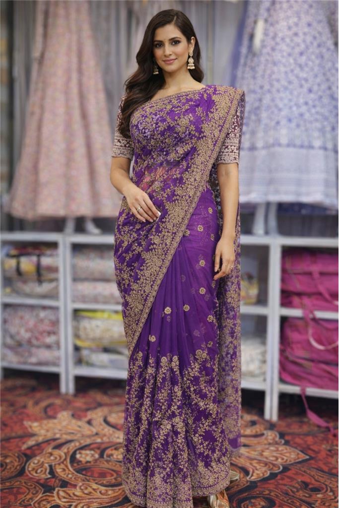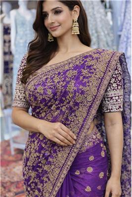 ✨ Product Description Points ✨ 💜 Elegant purple net saree with a rich, graceful appeal 💜 Crafted from soft, lightweight net fabric for a flowy drape 💜 Adorned with heavy gold embroidery for a luxurious look 💜 Beautiful floral and vine embroidery enhances festive charm 💜 Richly embroidered border adds royal elegance 💜 Comes with a matching embroidered blouse (as shown) 💜 Perfect choice for weddings, receptions, parties, and festive occasions 💜 Designed to make you stand out at special events 💜 A timeless blend of tradition and glamour
