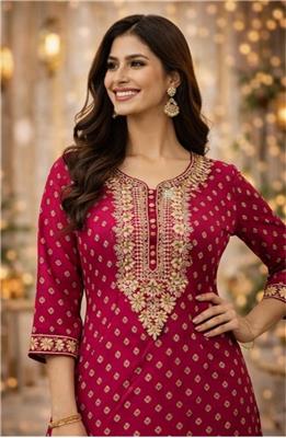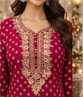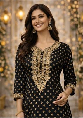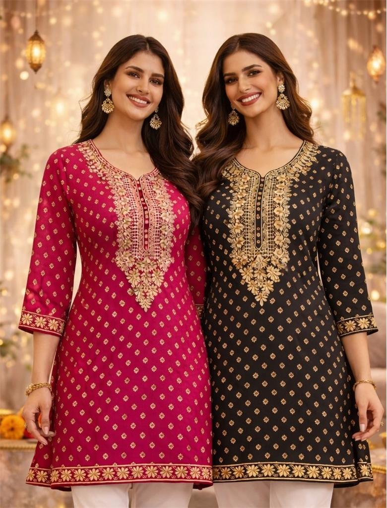 💖 Design Royal Fuchsia Grace Top Description: • 💖 Elegant dark fuchsia top with gold & cream embroidery • ✨ Premium georgette fabric – soft & stylish • 👗 Perfect for festive & casual wear • 📏 Sizes: 38–52 🖤 Design Midnight Gold Elegance Top Description: • 🖤 Classic black top with gold & cream detailing • ✨ Rich georgette material for a luxury look • 👗 Ideal for parties, events & everyday style • 📏 Sizes: 38–52