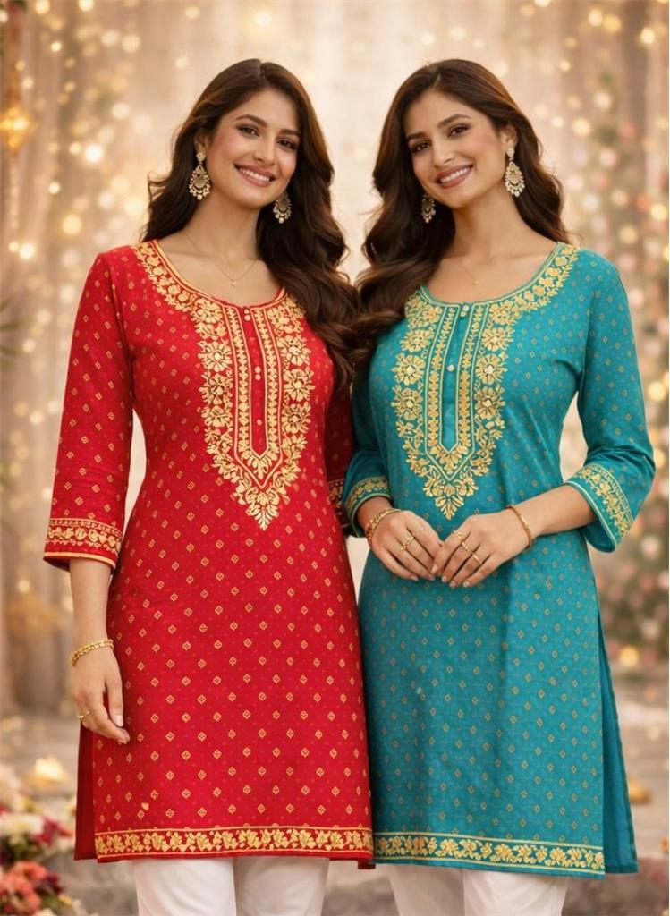 Design - Red Royal Elegance Red with Gold & Cream Design Cotton Material Size Available: 38 ✨ Elegant festive design with rich detailing 👗 Perfect for festive wear & special occasions 🌿 Soft & breathable cotton for all-day comfort Design – Teal Classic Grace Teal with Gold & Cream Design Cotton Material Size Available: 38 ✨ Elegant festive design with rich detailing 👗 Perfect for festive wear & special occasions 🌿 Soft & breathable cotton for all-day comfort