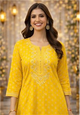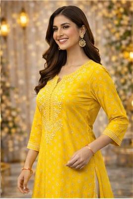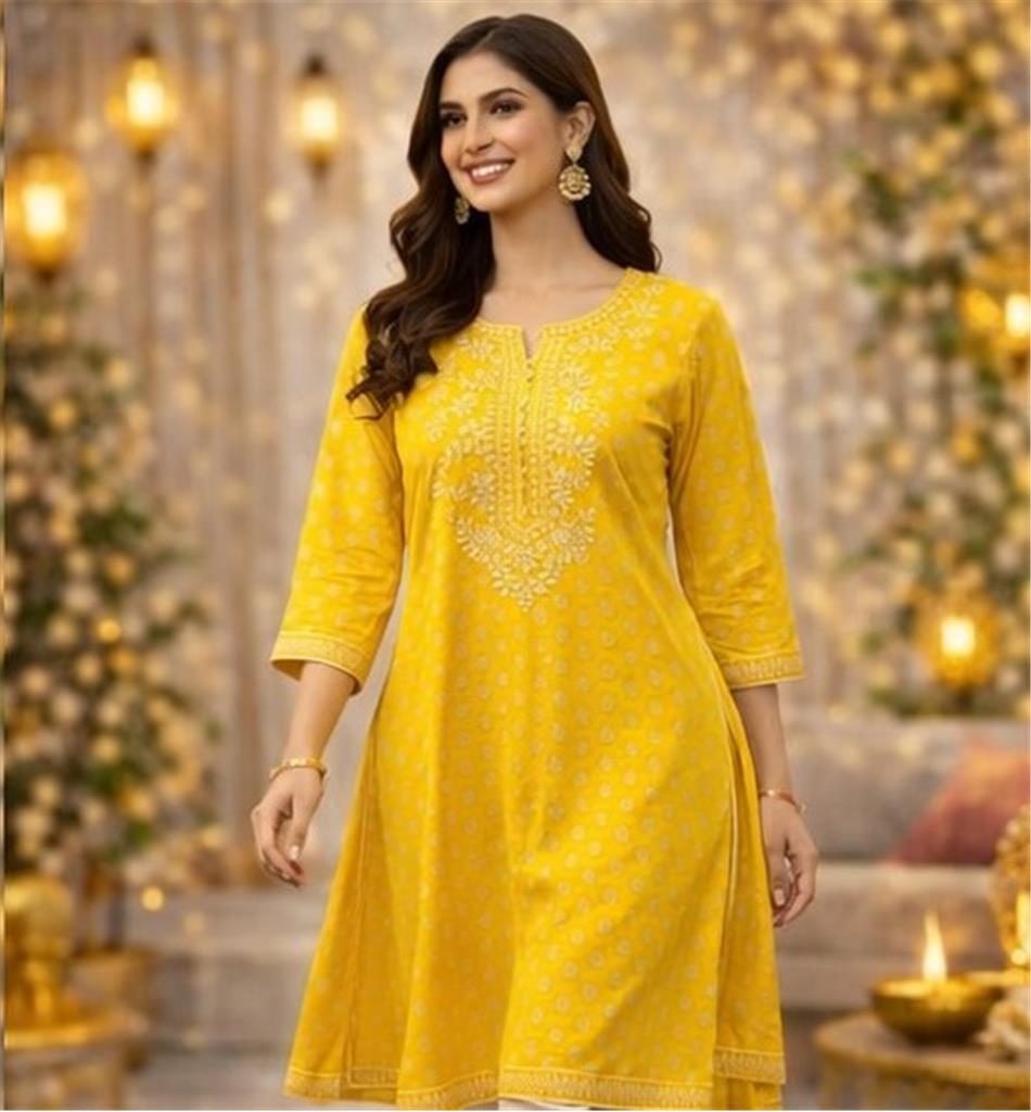 Golden Bloom Classic Top Description: • 🌼 Elegant yellow top with subtle gold & cream detailing • ✨ Lightweight cotton – stylish & easy to wear • 👗 Ideal for casual outings & festive looks • 📏 Size: 38