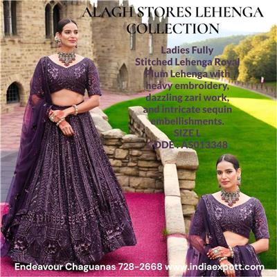 ✨ Royal Plum Color Lehenga with a rich and elegant finish ✨ Fully Stitched Ready-to-Wear Design for instant styling ✨ Heavy Embroidery Work showcasing premium craftsmanship ✨ Dazzling Zari Detailing for a luxurious traditional touch ✨ Intricate Sequin Embellishments that add graceful sparkle ✨ 2-Piece Lehenga Set perfectly coordinated for a complete look ✨ Size L offering a comfortable and flattering fit ✨ Ideal for Weddings, Festive Events & Parties ✨ Elegant, Royal & Statement-Making Outfit perfect for special occasions