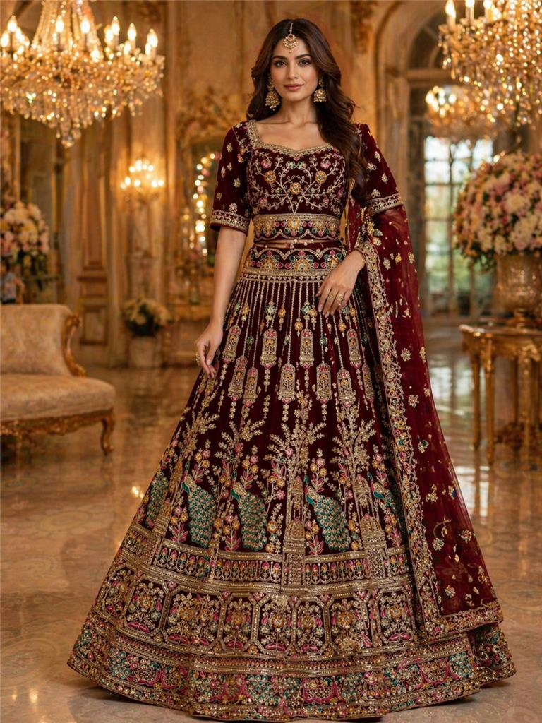 • Luxury Bridal Lehenga Collection – Exquisitely designed lehengas crafted for a stunning bridal and festive look. • Premium Fabric & Finish – Made with high-quality materials for comfort, durability, and a rich appearance. • Intricate Embroidery – Detailed threadwork with elegant patterns, embellishments, and fine craftsmanship. • Complete Set – Includes lehenga skirt, matching blouse, and beautifully designed dupatta. • Elegant Color Options – Available in a variety of rich, vibrant, and classic shades. • Perfect for Special Occasions – Ideal for weddings, receptions, and festive celebrations. • Available in Multiple Sizes – Designed to offer a flattering fit for different body types.