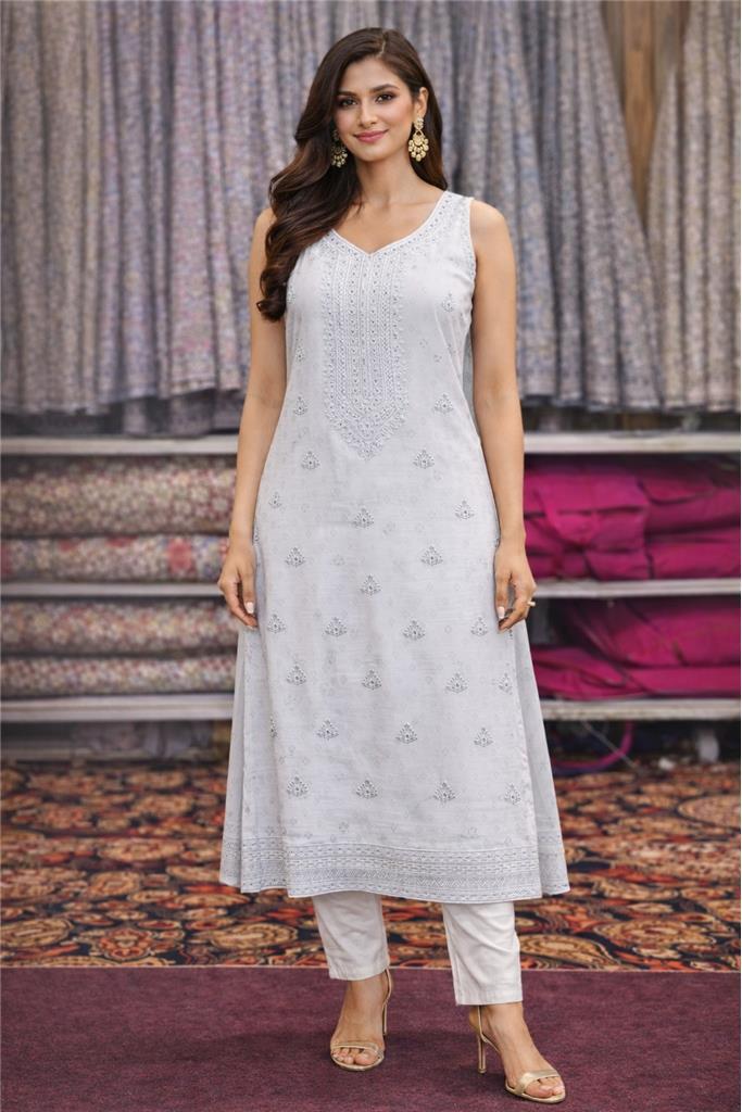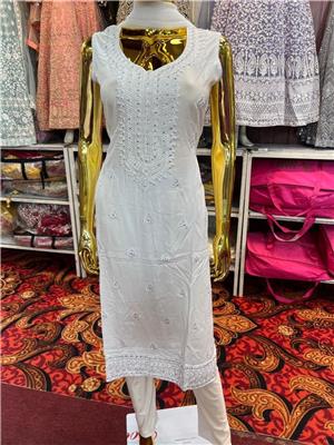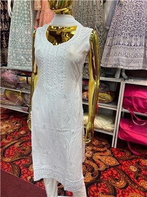🤍Premium quality rayon fabric for a soft, breathable, and lightweight feel. 🤍Elegant white base with white printed motifs for a classy and timeless look. 🤍Beautiful embroidered-look front panel that enhances overall style. 🤍Flattering V-neck design for a modern and graceful silhouette. 🤍Sleeveless kurta ideal for summer comfort and easy layering. 🤍Delicate printed border detailing at the hem adds a refined finish. 🤍Straight-cut kurta paired with a matching comfortable bottom. 🤍Designed for all-day comfort with a relaxed yet elegant fit. 🤍Perfect for casual wear, office wear, festive occasions, and summer outings. 🤍Easy to style with dupattas, statement jewelry, or minimal accessories.