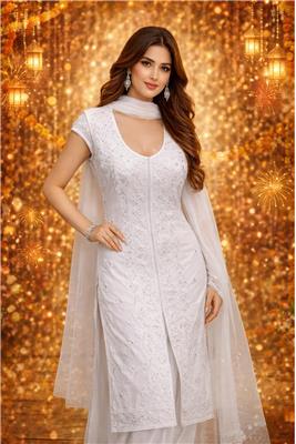 • Elegant White Color – Classic white shade that gives a clean, graceful, and timeless look. • Beautiful Embroidery Work – Detailed embroidery design on the front and borders adds a rich and sophisticated touch. • Complete 3-Piece Set – Includes kurta, matching pants, and dupatta for a fully coordinated outfit. • Premium Cotton Fabric – Soft, breathable cotton material ensures comfort for all-day wear. • Stylish & Comfortable Fit – Designed to provide ease of movement while maintaining an elegant silhouette. • Perfect for Occasions – Ideal for festive wear, family gatherings, and special events.