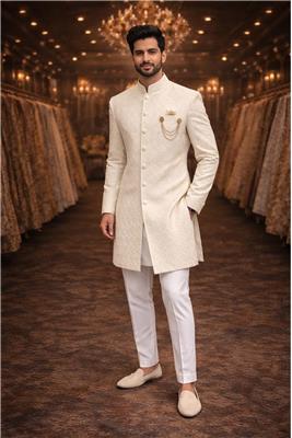 💑 His & Hers Indo-Western Festive Ensemble Elegant Coordinated Couple Set – Perfectly matched men’s Indo-Western sherwani and women’s embroidered festive outfit Premium Ivory & Gold Tones – Soft, luxurious colors designed for timeless elegance Rich Embroidery & Detailing – Intricate patterns and fine craftsmanship for a high-end finish Luxury Fabric Quality – Smooth, breathable, and comfortable for long festive wear Perfect for Special Occasions – Ideal for weddings, engagements, receptions, festive celebrations, Eid, Shivratri, and religious events Modern Yet Traditional Look – Classic Indian silhouettes with a refined contemporary touch Flattering Tailored Fit Women Size: 38 Men Size: 40 Statement Couple Style – Designed to stand out together with coordinated elegance Exclusive India Expo Offer – Complete couple outfit at a special sale price Ready to Wear – No compromise on comfort, confidence, or class Home Delivery Available – Convenient nationwide delivery ✨ Celebrate together in style — refined, graceful, and unforgettable.