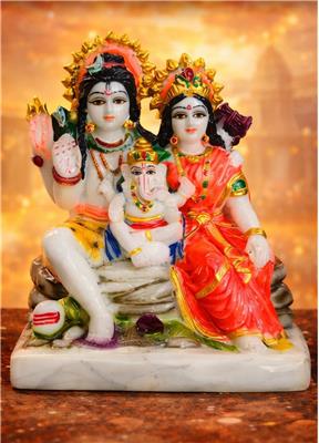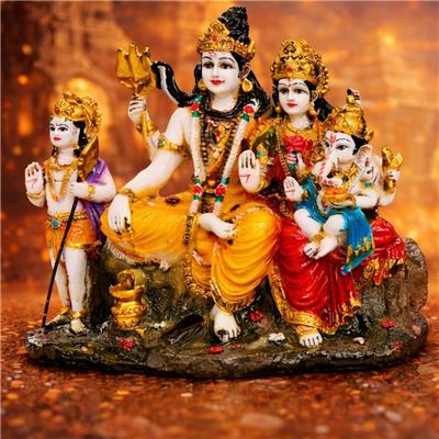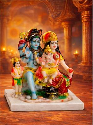 Brass Shiva Parivar Murti – 6 Inch Bring divine blessings and spiritual harmony into your space with this beautifully crafted Shiva Parivar Murti, made from high-quality brass. This sacred idol features Lord Shiva, Goddess Parvati, Lord Ganesha, and Nandi, symbolizing family unity, prosperity, protection, and spiritual strength. The antique brass finish, intricate detailing, and balanced design make this murti a perfect choice for home mandir, office altar, temple worship, and auspicious gifting. Despite its compact 6-inch size, the murti reflects grandeur, devotion, and timeless craftsmanship. ✨ Product Highlights: Material: Premium Brass Size: 6 Inch Detailed carving with antique golden finish Strong, durable & long-lasting Ideal for daily pooja & festive worship 🪔 Spiritual Significance: Worshipping the Shiva Parivar is believed to remove negativity, strengthen family bonds, attract peace and prosperity, and bring divine protection. It is especially auspicious for Shivratri, Diwali, Griha Pravesh, weddings, and spiritual occasions. 🎁 Perfect For: Home décor • Office décor • Temple use • Housewarming gifts • Religious gifting