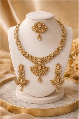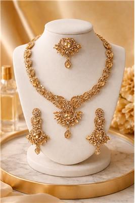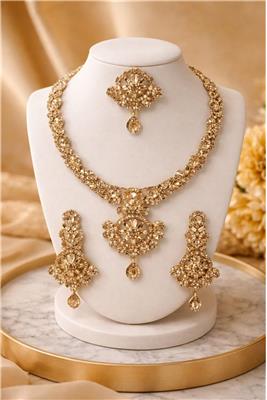 Add a touch of elegance and warm golden sparkle with our Light Colorado Topaz Golden Chain Set. Designed with beautifully colored topaz stones and finished with premium gold-tone plating, this chainset delivers a luxurious yet graceful appearance perfect for both festive occasions and stylish everyday elegance. • Light Colorado Topaz Stones – Elegant warm-toned crystals that create a beautiful golden sparkle. • Premium Gold-Tone Plating – High-quality finish that enhances the luxurious look of the jewellery. • Elegant Chainset Design – Stylish and balanced design perfect for modern and traditional fashion. • Brilliant Light Reflection – Stones are cut to capture and reflect light for a radiant shine. • Lightweight & Comfortable – Designed for long wear without discomfort. • Perfect for Special Occasions – Ideal for weddings, parties, festive celebrations, and formal gatherings.