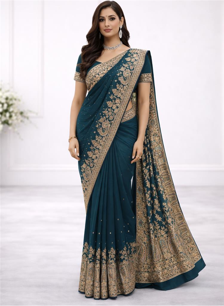 • Rich Dark Teal Color – Deep, elegant teal shade enhanced with colorful embroidery for a vibrant and eye-catching look. • Premium Georgette Fabric – Lightweight, flowy georgette material that gives a graceful and stylish drape. • Multicolor Embroidery Work – Beautiful detailed embroidery adds a festive and unique touch to the outfit. • Free Size Fit – Designed to comfortably suit a variety of body types. • Lightweight & Comfortable – Easy to wear for long hours while maintaining a chic appearance. • Perfect for Occasions – Ideal for parties, festive events, and special outings.