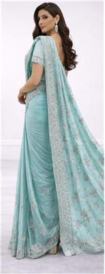• Soft Sky Blue Color – Light and refreshing sky blue shade enhanced with white & blue gem detailing for a delicate and elegant look. • Premium Chiffon Fabric – Lightweight, airy chiffon material that gives a soft, flowy, and graceful drape. • Gem Embellishment Work – Beautiful combination of white and blue gems adds sparkle and a refined finish. • Free Size Fit – Designed to comfortably suit a wide range of body types. • Perfect for Occasions – Ideal for parties, festive events, and special outings.