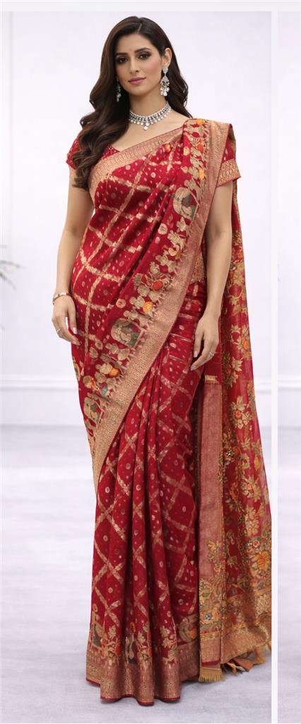 • Bold Red Color – Rich red shade enhanced with gold design detailing for a striking and festive look. • Premium Silk Fabric – Smooth, soft silk material that gives a luxurious feel and elegant drape. • Gold Design Work – Intricate gold detailing adds a traditional and royal touch to the outfit. • Free Size Fit – Designed to comfortably fit a wide range of body types. • Lightweight & Comfortable – Perfect for long wear while maintaining a classy and stylish appearance. • Perfect for Occasions – Ideal for weddings, festive events, parties, and special gatherings.