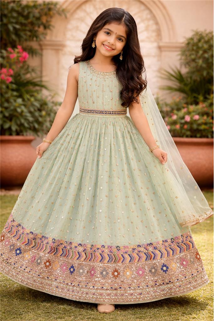 • Elegant Color – Beautiful lehenga enhanced with multicolor design work for a vibrant and festive look. • Multicolor Embellishment – Eye-catching mix of colors adds a lively and traditional charm. • Stylish Lehenga Design – Flowy and flared silhouette gives a graceful and elegant appearance. • Comfortable & Kid-Friendly Fit – Designed for easy movement and all-day comfort. • Perfect for Special Occasions – Ideal for weddings, festive events, birthdays, and family functions.