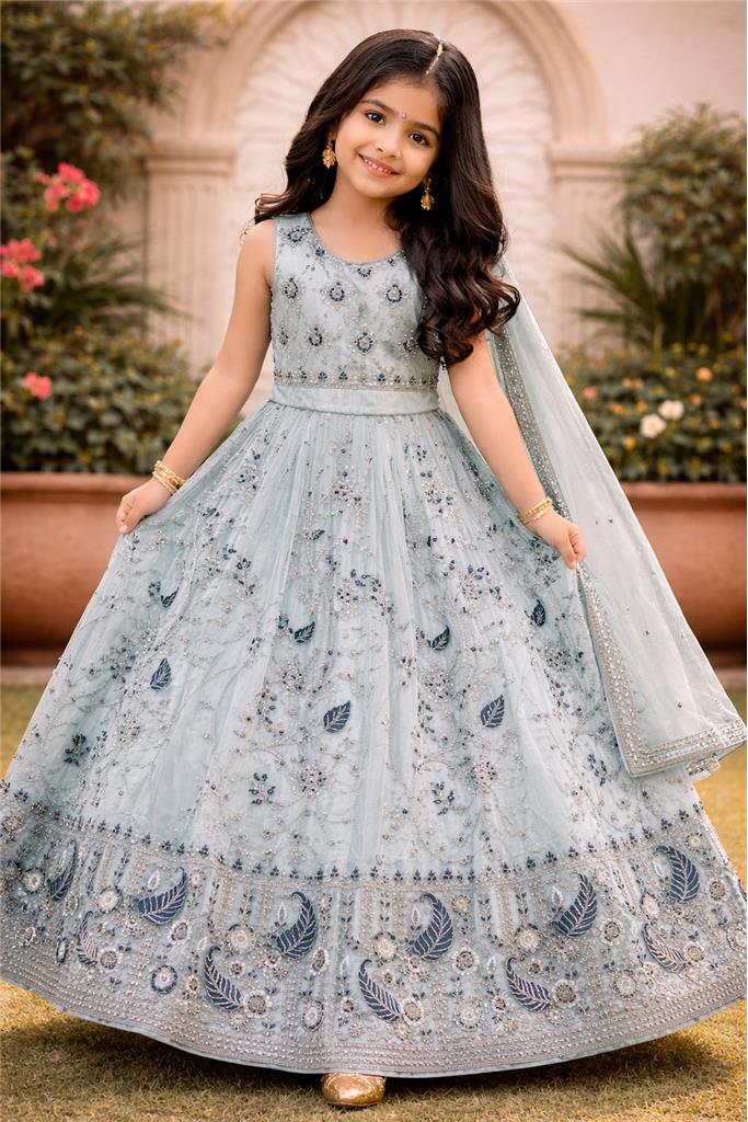 • Soft Baby Blue Color – Beautiful baby blue lehenga enhanced with dark blue & silver design for a graceful and elegant look. • Dark Blue & Silver Embellishment – Stylish contrast detailing adds a modern yet traditional festive appeal. • Stylish Lehenga Design – Flowy and flared silhouette gives a graceful and charming appearance. • Comfortable & Kid-Friendly Fit – Designed for easy movement and all-day comfort. • Perfect for Special Occasions – Ideal for weddings, festive events, birthdays, and family functions.