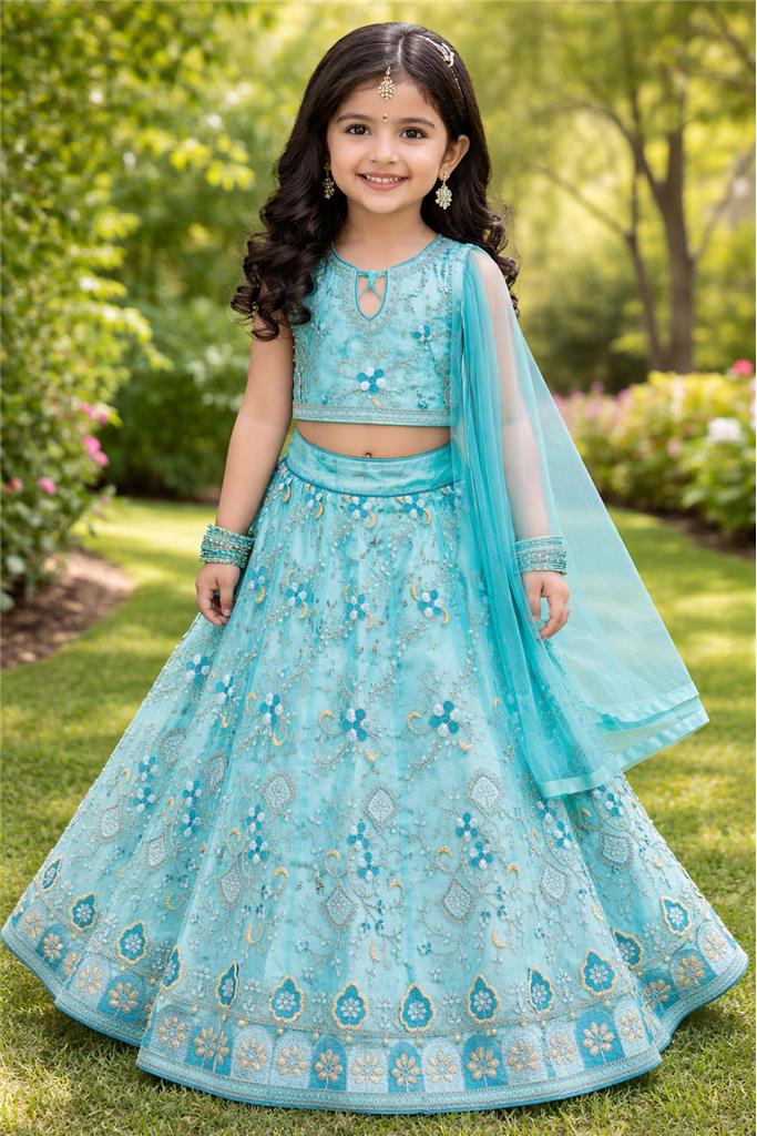 • Elegant Blue Color – Beautiful blue lehenga enhanced with multicolor design for a vibrant and festive look. • Multicolor Embellishment Work – Eye-catching mix of colors adds a lively and traditional charm. • Stylish Lehenga Design – Flowy and flared silhouette gives a graceful and elegant appearance. • Comfortable & Kid-Friendly Fit – Designed for easy movement and all-day comfort. • Perfect for Special Occasions – Ideal for weddings, festive events, birthdays, and family functions.