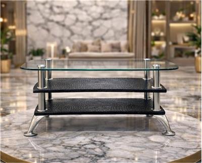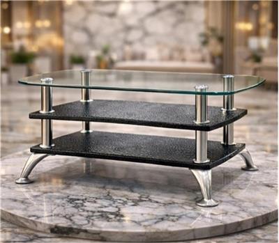 Product Description Enhance your living space with this Modern 3-Tier Glass Coffee Table, designed to bring both style and functionality to your home. The sleek rectangular tempered glass top creates a modern and elegant look, while the two sturdy lower shelves provide convenient storage for books, décor, or everyday essentials. Built with a combination of durable iron supports, strong glass, and a wooden shelf base, this table offers stability and long-lasting performance. The polished metal legs and contemporary design make it a perfect centerpiece for living rooms, lounges, offices, or reception areas. Its compact yet spacious design allows it to fit comfortably in modern interiors while adding a touch of luxury and sophistication to your décor. Key Features • Modern rectangular glass coffee table design • Strong tempered glass top for durability • 3-tier structure with two additional storage shelves • Premium combination of Iron, Glass, and Wood • Sleek chrome-finish legs for a modern look • Perfect for living rooms, offices, and lounge areas Specifications • Height: 15 inches • Length: 27.5 inches • Width: 15 inches • Material: Iron, Glass, Wood • Design: Medium Rectangular Glass Table
