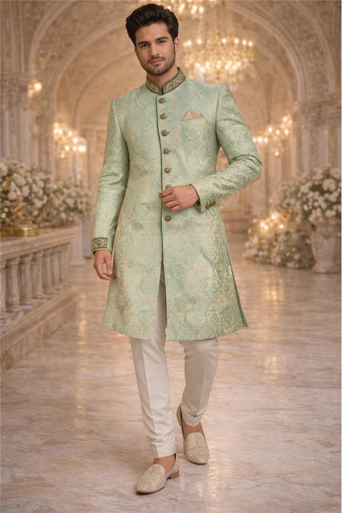 • Premium Ethnic Wear – Stylish indo-western suits designed for a modern yet traditional look. • Elegant Embroidery Design – Rich detailing with gold embroidery work adds a royal and festive touch. • Complete Outfit Set – Comes with coat-style kurta, inner shirt & matching pants. • Perfect Fit & Finish – Tailored for a sharp, structured, and classy appearance. • Comfortable & Stylish – Designed for long wear during events without compromising comfort. • Ideal for Special Occasions – Perfect for weddings, receptions, parties, and festive celebrations.