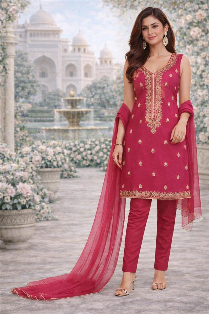 • Rich Royal Color – Deep royal shade enhanced with gold embroidery design for a bold and luxurious look. • Intricate Gold Embroidery – Detailed craftsmanship adds a premium traditional touch with a subtle shine. • Complete 3-Piece Set – Includes kurta, matching pants, and shawl for a fully coordinated outfit. • Premium Cotton Fabric – Soft, breathable cotton material ensures comfort for all-day wear. • Comfortable & Elegant Fit – Designed to provide ease of movement while maintaining a graceful silhouette. • Perfect for Occasions – Ideal for festive wear, parties, and special gatherings.