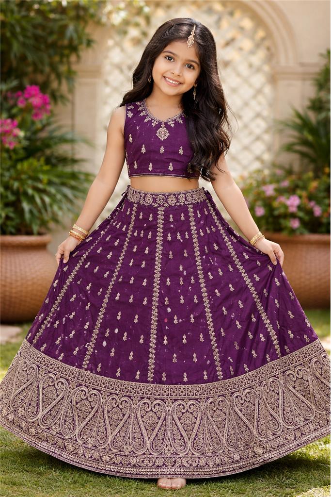 • Rich Dark Purple Color – Deep dark purple lehenga enhanced with gold design for a royal and elegant look. • Elegant Gold Work – Beautiful gold detailing adds a luxurious and festive touch. • Stylish Lehenga Design – Flowy and flared silhouette gives a graceful and traditional appearance. • Comfortable & Kid-Friendly Fit – Designed for easy movement and all-day comfort. • Perfect for Special Occasions – Ideal for weddings, festive events, birthdays, and family functions.