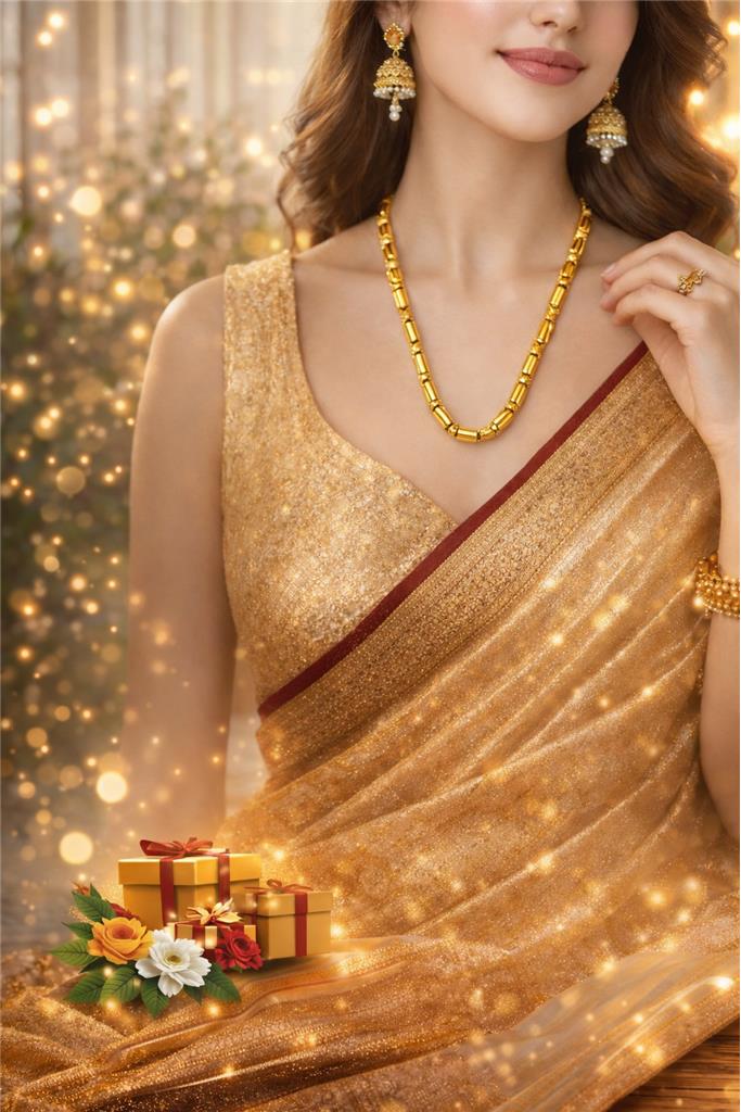 ✨ Elegant gold chain designed to add a rich, timeless touch to any outfit ✨ Classic thick-link style that creates a bold yet sophisticated look ✨ High-shine finish that catches the light beautifully for a radiant glow ✨ Perfect statement piece for weddings, festive occasions, and special events ✨ Versatile design that pairs effortlessly with sarees, lehengas, and ethnic wear ✨ Comfortable to wear with a smooth finish that sits gracefully on the neckline ✨ Ideal for gifting or elevating your jewelry collection with a luxurious feel ✨ Complements both traditional and modern styles for all-occasion wear