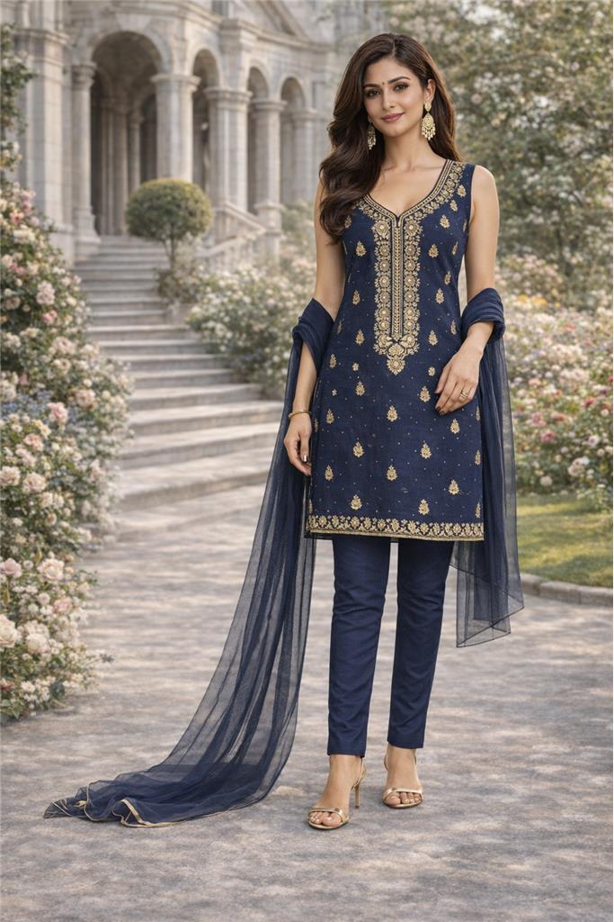 • Rich Royal Colors – Deep royal shade enhanced with gold embroidery design for a bold and luxurious look. • Intricate Gold Embroidery – Detailed craftsmanship adds a premium traditional touch with a subtle shine. • Complete 3-Piece Set – Includes kurta, matching pants, and shawl for a fully coordinated outfit. • Premium Cotton Fabric – Soft, breathable cotton material ensures comfort for all-day wear. • Comfortable & Elegant Fit – Designed to provide ease of movement while maintaining a graceful silhouette. • Perfect for Occasions – Ideal for festive wear, parties, and special gatherings.