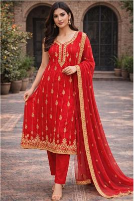 • Elegant Colors – Beautiful shade enhanced with gold embroidery design for a rich and luxurious look. • Intricate Gold Embroidery – Detailed craftsmanship adds a premium, traditional touch with a subtle shine. • Complete 3-Piece Set – Includes kurta, matching pants, and shawl for a fully coordinated outfit. • Flowy Chiffon Fabric – Lightweight chiffon material gives a soft, airy feel with a graceful drape. • Comfortable & Stylish Fit – Designed to provide ease of movement while maintaining a refined silhouette. • Perfect for Occasions – Ideal for festive wear, parties, and special gatherings.