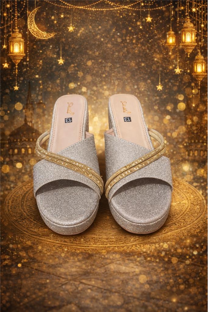 • 👡 Elegant Ladies Glitter Platform Slippers designed for a stylish and glamorous look • ✨ Shimmering Glitter Finish adds sparkle and elegance to any outfit • 💎 Chic Cross-Strap Design with Gold Accent enhances the fashionable appearance • 🦶 Soft Cushioned Footbed provides comfort for long wear • 🌟 Lightweight Platform Sole offers extra height with comfortable support • 👗 Perfect for Festive & Special Occasions ideal for Eid, parties, weddings, and celebrations • 🎉 Modern & Trendy Design pairs beautifully with dresses, abayas, and traditional outfits • 💪 Durable & Stylish Construction built for both fashion and everyday use • 🎁 Great Gift Option for festive celebrations and special events •🎨📏 Available in colour & Size: •Pink - 9,10,11,12,13 •Silver - 8,10,11,12,13 •Golden - 8,13