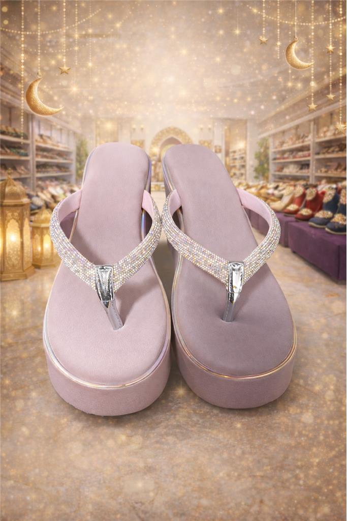 • 👡 Elegant Ladies Eid Slippers designed to add sparkle and style to your festive outfits • ✨ Shimmering Crystal Strap Design gives a glamorous and eye-catching look • 💎 Stylish Rhinestone Detailing enhances the beauty and elegance of the slippers • 🦶 Soft Cushioned Footbed provides comfort for long wear during celebrations • 🌟 Lightweight Platform Sole offers added height with comfortable support • 👗 Perfect for Eid & Special Occasions pairs beautifully with dresses, abayas, and festive outfits • 🎉 Trendy & Fashionable Design ideal for parties, gatherings, and celebrations • 📏 Available Sizes: 9, 10, 11, 13