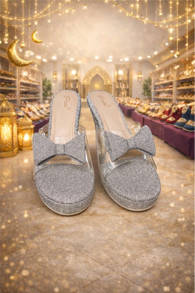 • 👡 Elegant Bridal Slippers for Eid designed to add sparkle and style to festive outfits • ✨ Beautiful Glitter Finish with Bow Design gives a glamorous and elegant look • 👰 Perfect for Eid & Special Occasions ideal for weddings, parties, and festive celebrations • 💎 Stylish Transparent Strap Design for a modern and fashionable appearance • 🦶 Comfortable Footbed designed for easy and comfortable wear throughout the day • 🎀 Chic Bow Detail adds a feminine and sophisticated touch • 👗 Perfect Match for Traditional & Modern Outfits pairs beautifully with dresses, abayas, and festive wear • 📏 Available Sizes: 9 & 10