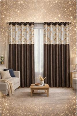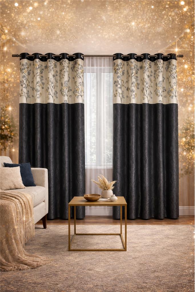 • Elegant Dual-Tone Design – Stylish combination of floral pattern with rich dark panels to enhance your home décor. • Semi-Sheer Darkening Fabric – Allows soft natural light while maintaining privacy and reducing harsh sunlight. • Premium Finish & Look – Perfect blend of modern and classic design for a luxurious interior feel. • Easy to Hang – Comes with eyelet rings for quick installation and smooth sliding. • Perfect for Any Space – Ideal for living rooms, bedrooms, and lounges. • Set Includes: 3 Panels • Panel Size: Width 4 ft × Length 7 ft