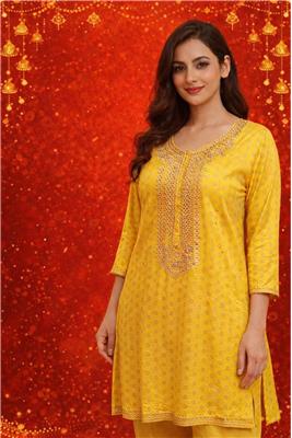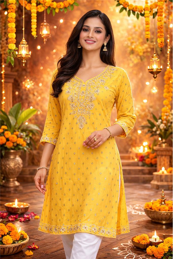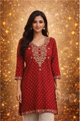 • 👗 Stylish Ladies Kurti Top designed for a modern yet traditional look • 🧵 Soft & Comfortable Fabric perfect for all-day wear • ✨ Elegant Printed / Embroidered Design adds a touch of ethnic charm • 🌸 Flattering Straight-Cut Fit suitable for casual and semi-formal occasions • 👖 Versatile Styling pairs beautifully with jeans, leggings, palazzos, or skirts • 🌬️ Lightweight & Breathable Material ideal for daily wear and warm weather • 💃 Perfect for Multiple Occasions – casual outings, office wear, shopping, or small gatherings • 🎨 Available in Attractive Colors & Designs to match different styles • 🧼 Easy to Wash & Maintain durable fabric for regular use • 🎁 Great Gift Option for friends, family, or festive occasions Sizes Available in 38 to 52