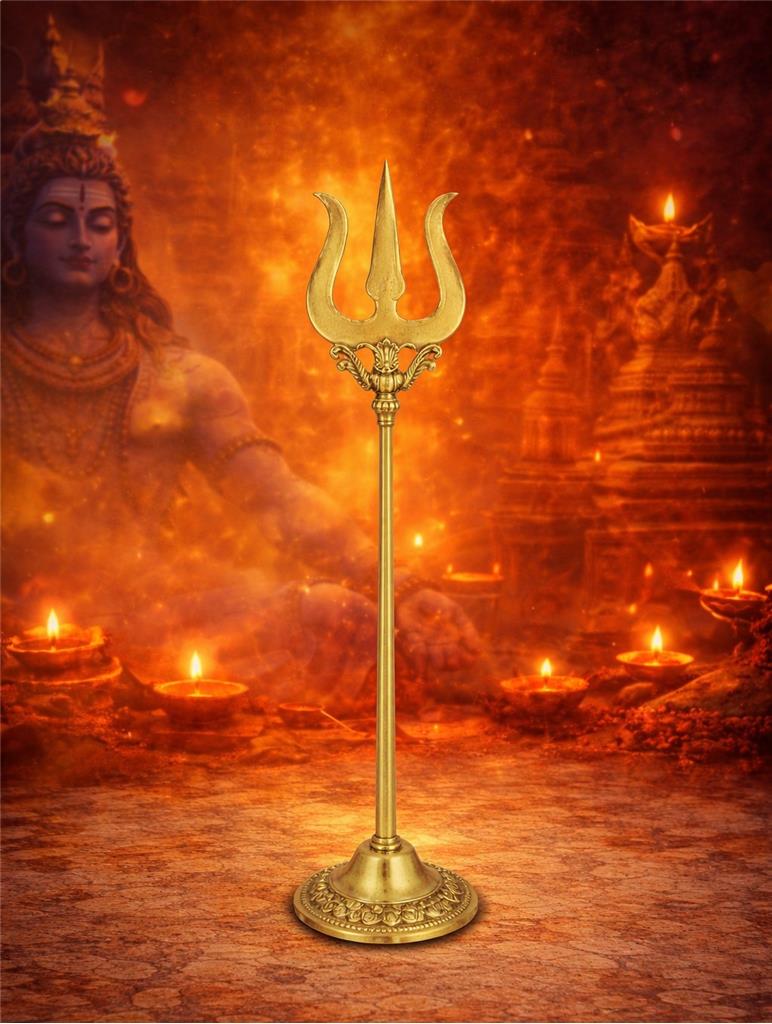 🔱 Sacred Symbol – Traditional brass Trishul for temples, puja rooms & religious spaces. 🛡️ Protective Energy – Believed to ward off negativity & bring divine protection. 💫 Blessings for Life – Enhances health, wealth, career, education & family harmony. ✨ Spiritual Decor – Elegant showpiece that adds power & purity to your puja room. 🌟 Symbol of Shiva’s Control – Represents balance of creation, preservation & destruction.
