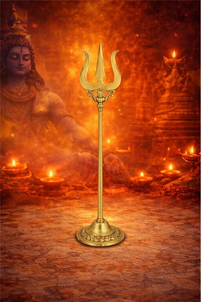 🔱 Sacred Symbol – Traditional brass Trishul for temples, puja rooms & religious spaces. 🛡️ Protective Energy – Believed to ward off negativity & bring divine protection. 💫 Blessings for Life – Enhances health, wealth, career, education & family harmony. ✨ Spiritual Decor – Elegant showpiece that adds power & purity to your puja room. 🌟 Symbol of Shiva’s Control – Represents balance of creation, preservation & destruction.