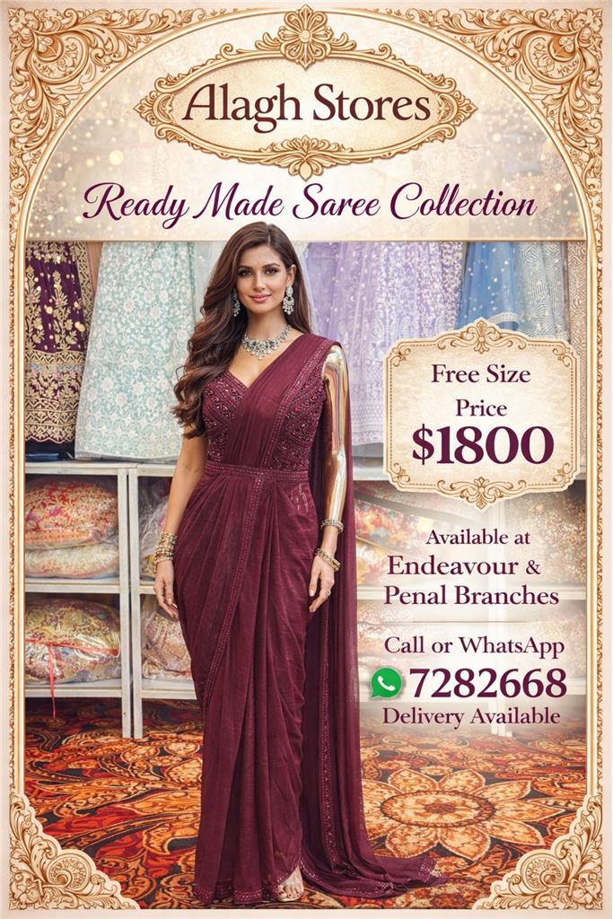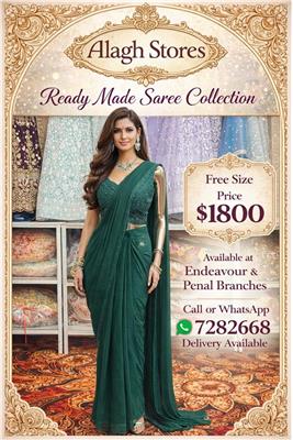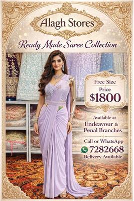 🌸 Alagh Stores – Ready Made Saree Collection 🌸 Discover elegance, convenience, and luxury with our exclusive Ready Made Saree Collection. Designed for the modern woman who loves traditional beauty without the hassle of draping, these pre-stitched sarees offer effortless sophistication for weddings, receptions, parties, and special occasions. ✨ Available Colors: 🪷 Soft Lilac 🪷 Emerald Green 🪷 Wine / Maroon 🪷 Mint Green Each saree features: ✔ Intricately embellished blouse with detailed beadwork & embroidery ✔ Pre-stitched pleats for a flawless drape ✔ Attached pallu for easy wear ✔ Elegant waist finishing for a structured, slimming fit ✔ Premium flowing fabric with subtle shimmer