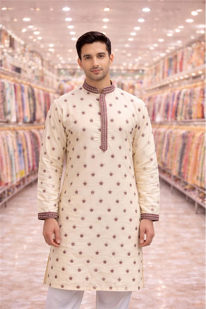 Men’s Printed Kurta — Product Points:- Refreshing aqua blue kurta with elegant all-over motif print Stylish mandarin (band) collar with contrast detailing Decorative buttoned placket enhances traditional appeal Full sleeves with coordinated printed cuffs Straight cut, knee-length silhouette for a classic ethnic look Comfortable relaxed fit for easy movement Lightweight & breathable fabric suitable for long wear Soft, skin-friendly material for all-day comfort Side slits for better mobility and modern styling Easy to pair with white pajama, churidar, or trousers Ideal for festive occasions, family functions & celebrations Perfect for daytime events and semi-formal ethnic gatherings Easy care: gentle wash recommended, medium iron for crisp finish Available in sizes 36, 38 & 40